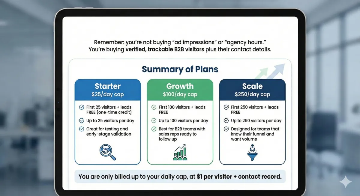 First 25 qualified visitors + lead records FREE (a $25 credit)
