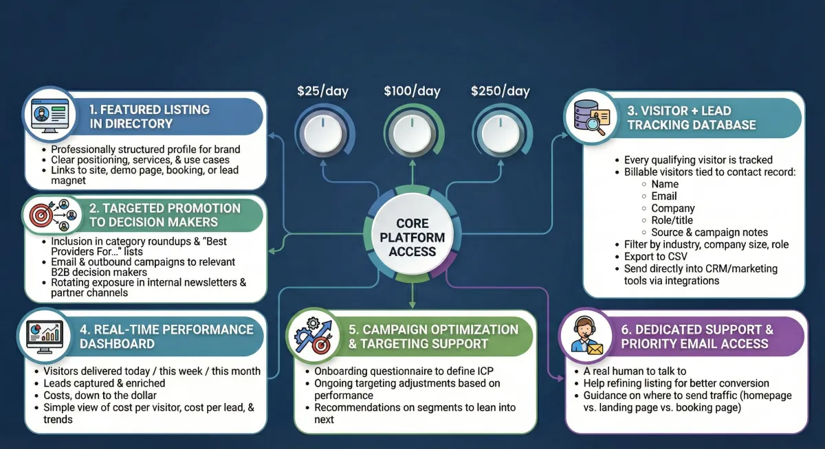 First 100 qualified visitors + lead records FREE (a $100 credit)